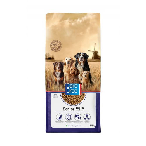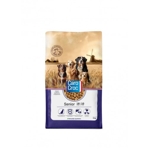 De CaroCroc Senior hondenbrokken zijn speciaal samengesteld voor de ouder wordende hond. Vanaf 7 jaar kan jouw hond tekenen van veroudering gaan vertonen. Om de gezondheid te blijven ondersteunen is het van belang om naar een senior voer over te schakelen. Deze brokken dragen onder meer bij aan een versterking van de afweer en ondersteunen de gewrichten.