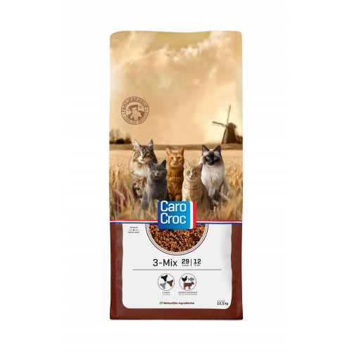 De CaroCroc 3-Mix kattenbrokken zijn een combinatie van drie verschillende kleurrijke brokken met de smaken: rund, gevogelte en vis.