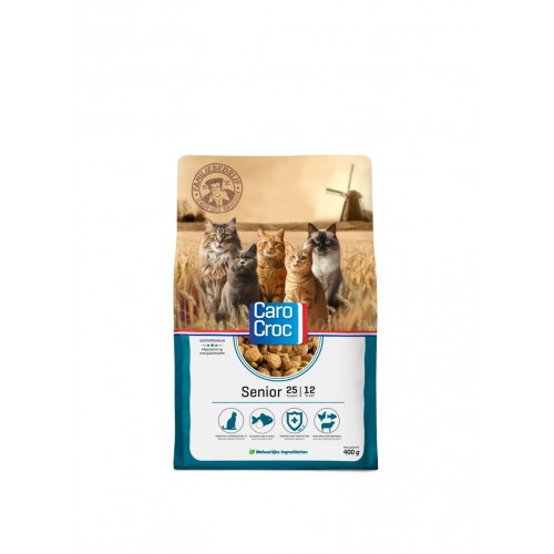 De CaroCroc Senior kattenbrokken zijn speciaal samengesteld om de ouder wordende kat te ondersteunen. Met het bereiken van deze nieuwe levensfase krijgt jouw kat een andere energiebehoefte. Het is belangrijk om het voer hierop aan te passen. Het verlaagde energiegehalte in deze brokken zorgt voor een lagere belasting van bijvoorbeeld de nieren, lever en de spijsvertering