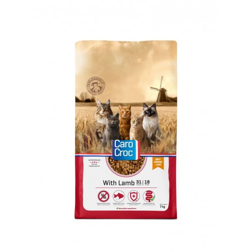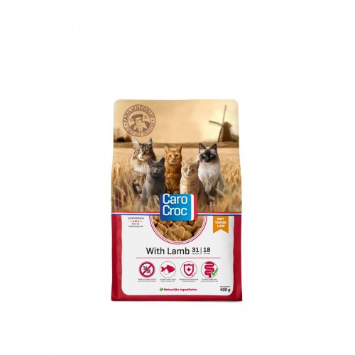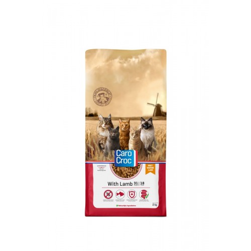 De CaroCroc With Lamb katttenbrokken zijn bereid met verse lam en ondersteunen een gezonde spijsvertering. De brokken bevatten geen tarwegluten en dragen bij aan een goede darmfunctie.